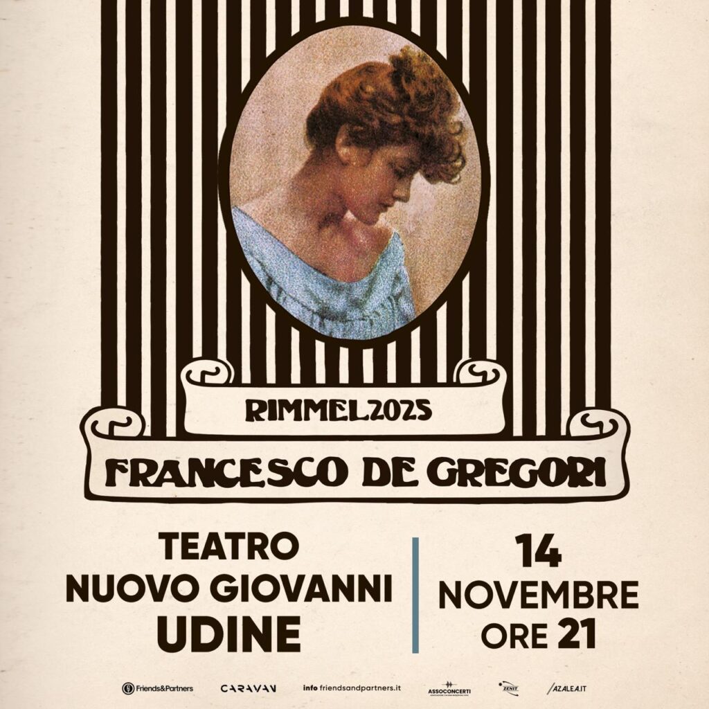RIMMEL 2025 – TEATRI PALASPORT CLUB 14/11/2025 9:00 pm – Udine – Teatro Nuovo Giovanni da Udine FRANCESCO DE GREGORI IN CONCERTO A UDINE! Nel 2025 Francesco De Gregori festeggerà l’anniversario dell’uscita di “Rimmel”, il…